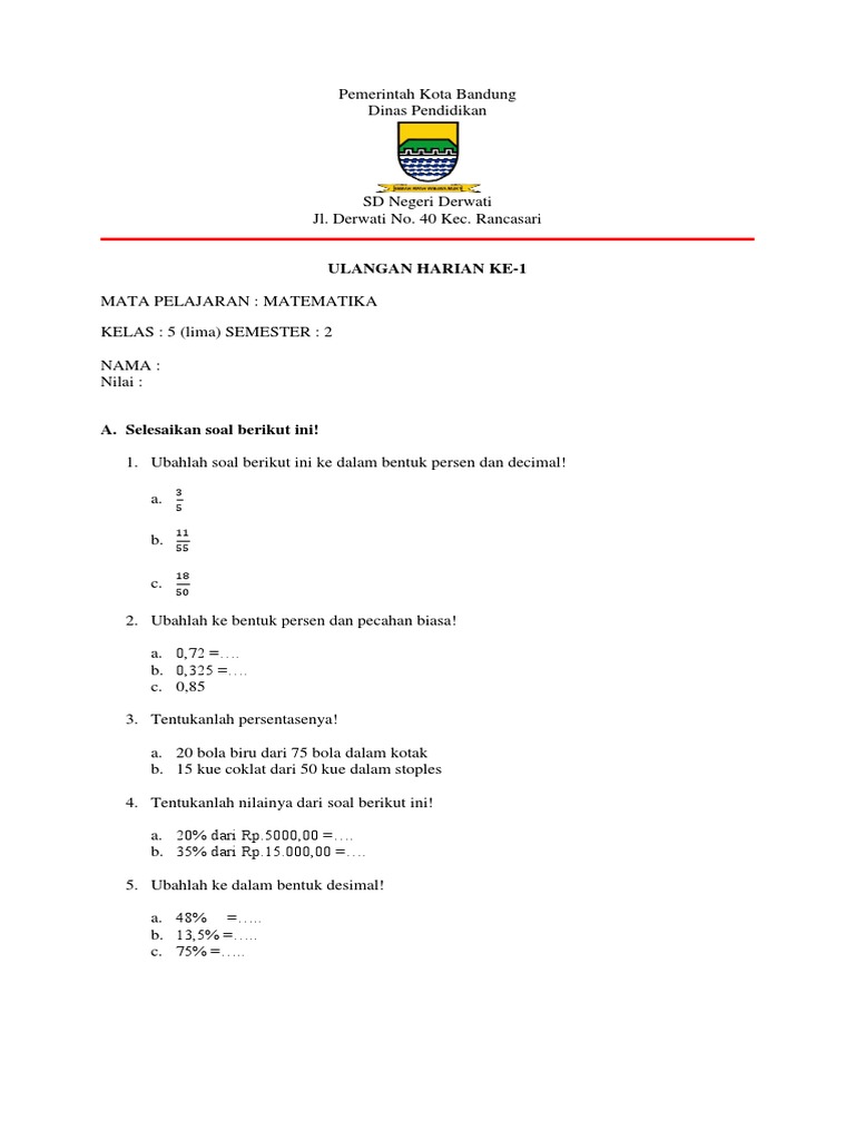 Contoh Soal Matematika Kelas 5 Sd Semester 2 2021 from rumus.co.id Maybe you would like to learn more about one of these? We did not find results for: Kunci jawaban ulangan harian kelas 5 matematika. Check spelling or type a new query.