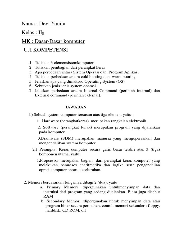 Fungsi utama dari sistem operasi adalah menjalankan operasi dasar pada komputer . Instruksi dasar input adalah instruksi yang dapat memberikan informasi kepada perangkat lunak lainnya yaitu sistem operasi dengan perantara driver. Belajar ilmu komputer dasar dengan guru terbaik. Dalam sistem komputer, kita mengenal ada tiga komponen utama, yaitu hardware,. Bahasa mesin dan bahasa rakitan.